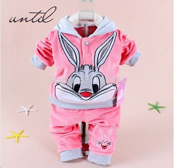 Cartoon rabbit velvet set twinset long sleeve set hoodie.